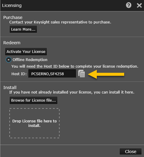 Then click the "Offline Redemption" drop-down to view your computer's Host ID. To copy the Host ID to the Windows clipboard, click the