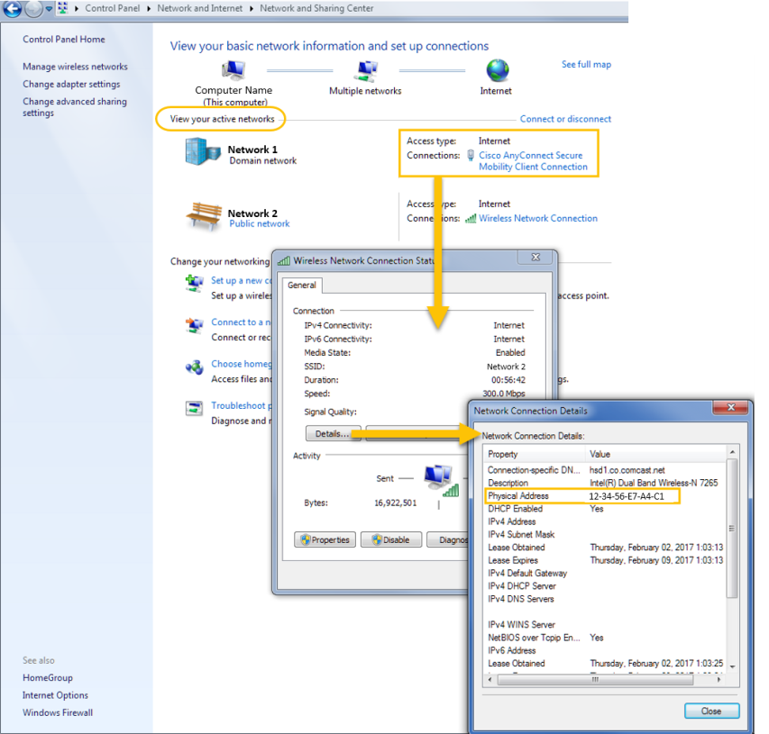 To determine your MAC (physical) address, you can use either the Windows Control Panel or the Windows Command Prompt.