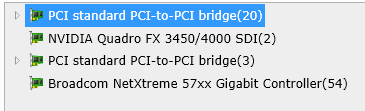The number in parentheses following the description of each bridge or other equipment is the PCI bus number corresponding to this equipment. For example, in the image above, the PCI standard PCI-to-PCI bridge shown at the top of the tree is on bus number 20.