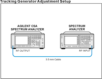 This adjustment determines the output power of the tracking generator (TG) at several frequencies throughout the TG’s range. The frequencies chosen are the same as those used in the Amplitude adjustment. The TG output is measured using another spectrum analyzer connected to the CSA's RF OUTPUT via a high-quality, low-loss cable.