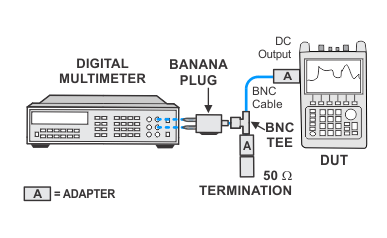 This test verifies that the DC Bias circuitry is operational. A BNC tee is placed on the digital multimeter. A 50 ohm termination is connected to one side of the tee.