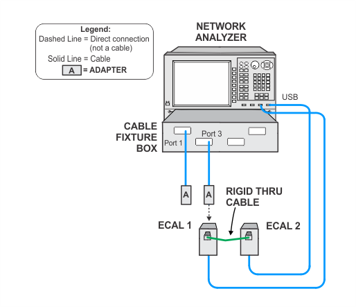 The network analyzer used in certain tests must be calibrated with the cable and adapter prior to running the test. The calibration will need to be repeated once every three days or if the adapters or cables have been disturbed. If it's been within the three day time-frame and the adapters and cables have not been disturbed, then the network analyzer calibration is not necessary and you may proceed with the test.