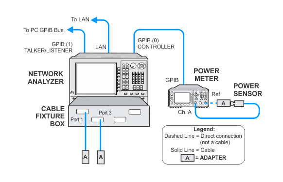 The power meter used in these procedures will be controlled by the network analyzer through the GPIB connection from the power meter to the network analyzer. Therefore the power meter needs to be added to the Keysight Connection expert via a remote GPIB interface.