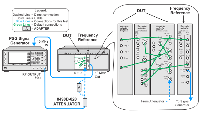 This test measures the amplitude error when switching between the 40 MHz IF Filter path and the 100/160 MHz IF Filter Path. The M9393A has two 40 MHz IF Filter paths: Standard and Alternate. The 40 MHz Alternate IF Path is only used below 3.6 GHz. The 40 MHZ IF path selection (Standard/Alternate) is managed by the M9393A software. This test is run at two frequencies. One test frequency will test the 40 MHz Standard IF Path, and the other frequency will measure the 40 MHz Alternate IF Path. If the M9393A has a Preamplifier option installed, the test will be repeated with the Preamplifier turned on.