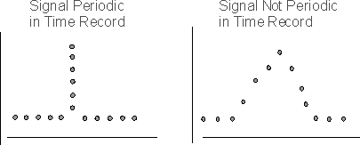 The FFT assumes that the signal it's processing is periodic from time record to time record. If the signal is not periodic in the time record, the FFT won't estimate the frequency components accurately. The result is called leakage, and it has the effect of spreading the energy from a single frequency across a range of frequencies, as shown below: