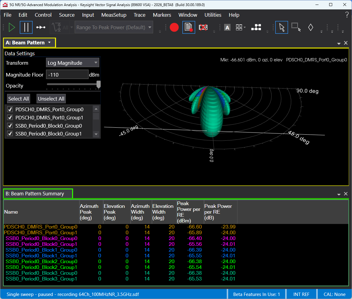 The trace shows a three-dimensional simulated representation of all available beam patterns in the system, including all layers, antenna groups, and users.