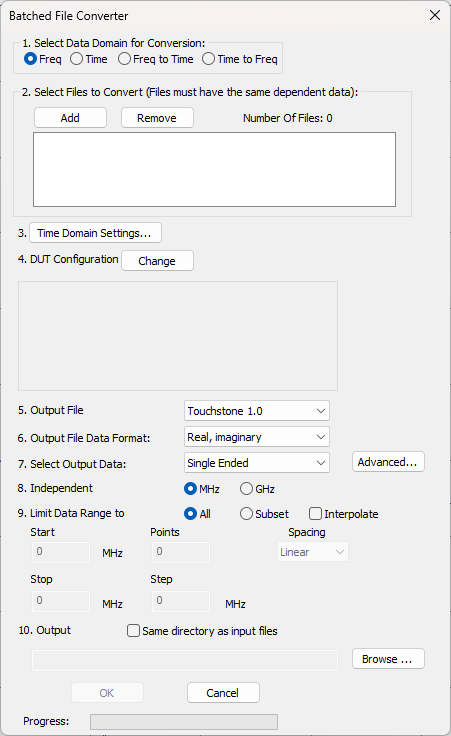 Note: Beginning with PLTS 2014, Batched File Converter can convert a Frequency Domain file to a Time Domain file and vice versa.