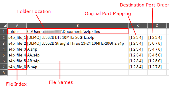 Change - Opens the DUT Configuration dialog so you can make changes to your DUT configuration. Browse for Import Build Config File - Opens a file manager window to select a *.csv file of a saved build. Example BuildMultiPortConfig.csv file shown below.