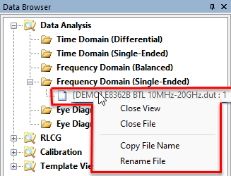 RIght-click any file in the Data Browser pane to open a menu of various file-management actions.