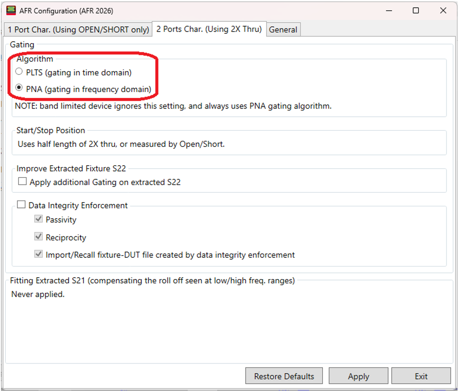 Choose from: PLTS - Gating in time domain. PNA - Gating in frequency domain. |