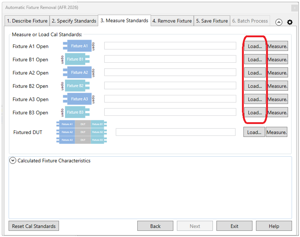 :AFR:STAN:NPORt:LOAD AFIXture, 1, OPEN, ‘C:/Temp/open.s1p’ |