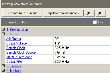 Double-click or use the drop-down menu to select the sample clock source. External may be used when multiple Arbs need to be synchronized.