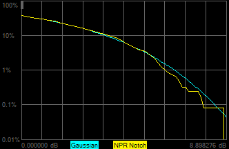 the NPR Notch test signal, as well as the Gaussian distribution (pink