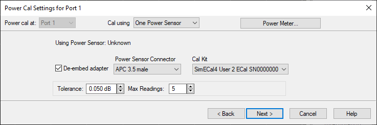 Power Level at which to perform the Port 1 Source Power Cal. It is usually best to perform the Source Power Cal at 0 dBm because the power sensor is calibrated at that level. However, if a component is used between the VNA source and the calibration reference plane, then adjust the power level so that the power at the sensor is about 0 dBm if possible. |