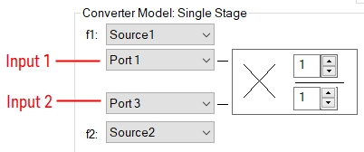 If the configuration is not "Internal Combiner," then this is two combo boxes, where the upper box represents "Input 1" and the lower box represents "Input 2" as found on the RF Path tab.