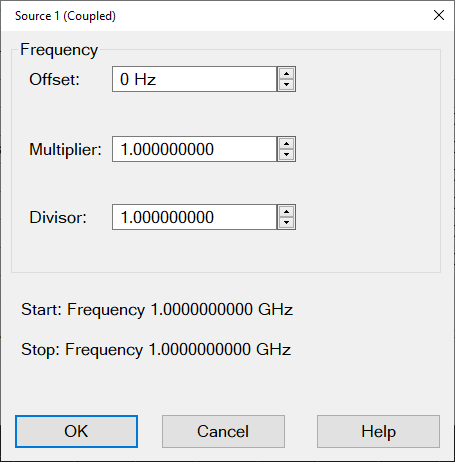 Primary The current Active Channel settings. When a Source or Receiver is coupled to the Primary settings, its Sweep Type is the same as that of the Primary. The frequency settings of the coupled range are mathematically derived from the Primary settings using the Multiplier, Divisor, and Offset values. With this approach, only the Primary settings need to be changed in order to affect change in the coupled Sources and Receivers. Changes to the Primary channel settings occur when Frequency Offset is checked ON. See example using Primary and Coupled setting.
