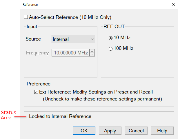If "Auto Select Reference (10 MHz Only)" is enabled, this is grayed out and will display either "Internal" or "REF IN."