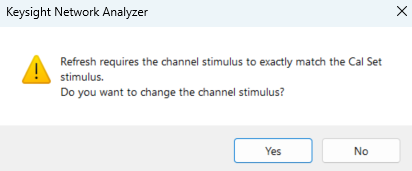 If the user selects Refresh... and the stimulus of the currently active channel does not exactly match the Cal Set stimulus, then a warning dialog will be displayed which allows the user to automatically change the channel stimulus.