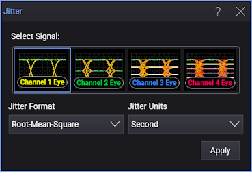 Selecting the Jitter measurement requires a selection of the Root-Mean-Square or Peak-to-Peak algorithm.