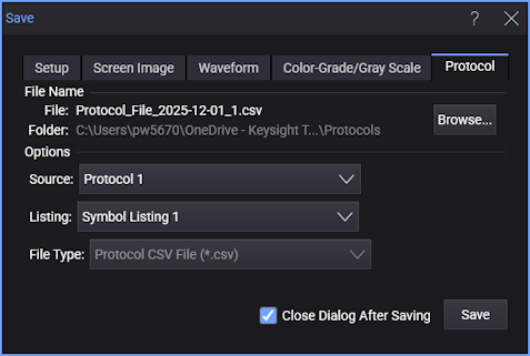 - All protocol decodes can be saved in the comma-separated value (*.csv) format.