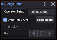 The Align math operator lines up two single-values waveforms or eye diagrams. Time delay is applied to the top operand to move it reference to the bottom operand. To align the two waveforms, click on the operator icon which opens the dialog box shown in this figure. If the Automatic Align does not meet your needs, clear the check box and manually enter the time delay.