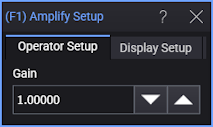 The Amplify math operator amplifies the input values, point by point, of the source and places the result in the function waveform. The source waveform is vertically scaled to keep the displayed waveform's size unchanged on the screen. This results in different vertical scales for the source and output waveforms.
