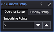The Smooth operator takes the number of data points as defined by the Smoothing Points control, starting from the left side of the waveform viewing, takes the average voltage value of the points, and plots it. The smoothing operator then moves to the right by one data point, takes the next set of data points, and averages them. This process continues until all of the on-screen data has been smoothed.