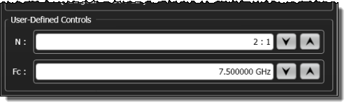 The <Resolution> child element sets a resolution for the setting based on the unit of measurement (without multiplier). For example, in the following picture a "1000" resolution specifies that the value of Fc can be set to a minimum resolution of 1000 Hz. Therefore, using keyboard entry 7.500000 GHz can be changed to 7.500001 GHz. A setting of 1000000 would have limited the resolution to 1 MHz. <Resolution> does not affect the step sizes of the step buttons.