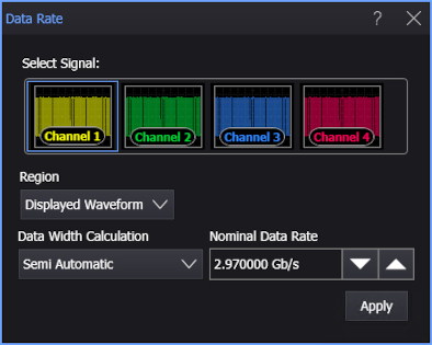 - In Automatic mode, the data rate is found by searching your waveform for the narrowest data pulse. When the Automatic mode has trouble finding the data rate due to excessive high-frequency jitter on the waveform, the Semi Automatic mode can be used.