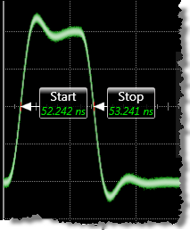You can define the edge number, direction, and threshold used for the measurement as well as the waveform source for each edge. The measurement can also be restricted to a region. An annotation label is placed at the time of the first edge source (start) and at the time of the second edge source (stop).