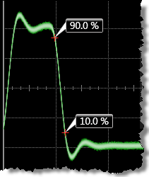 The default setting for the threshold levels are the 10% to 90% points on the transition. The top level is defined as the 100% level of the waveform. The base level is defined as the 0% level of the waveform.