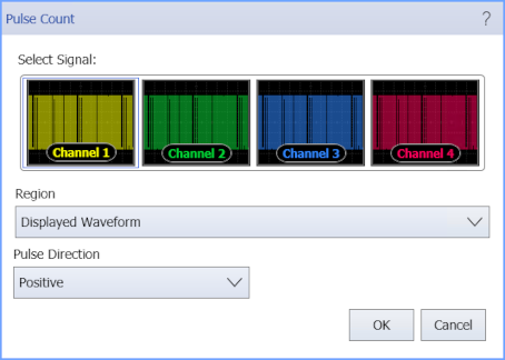 Pulse Count counts the number of positive or negative pulses in the waveform.