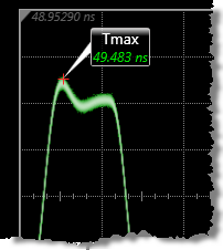 The measurement can be restricted to a region. Time at Max is position independent. Therefore, the instrument uses the entire waveform on the display graticule to determine the maximum signal level. An annotation label is placed at the result.