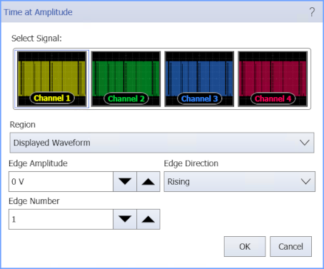 When this measurement is selected, a dialog box appears from which you select the edge number, direction, amplitude value, and if it is restricted to a region.