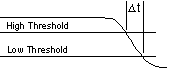 Falling edge transitions are measured from the time the waveform crosses the high threshold until the time it crosses the low threshold.