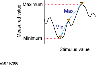 Click the corresponding softkey to move the marker to the maximum or minimum measured value.