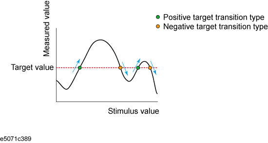 A target is a point that has a specific measured value on the trace. Targets can be divided into the two groups shown below depending on their transition type.