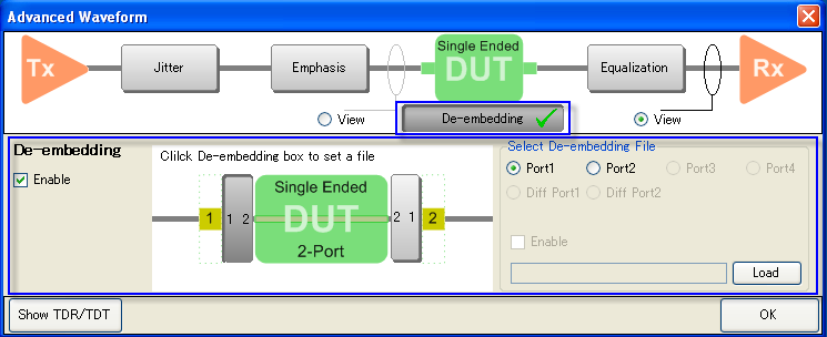 If differential topology is selected, load S4P or S2P file. For single ended topology, load S2P file.