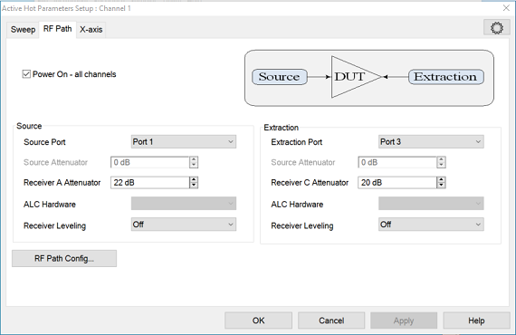 Option S9x111A/B Measurement Parameters Note: In the example below, Port 1 is the Source Port (DUT input) and Port 3 is the Extraction Port (DUT output). Port 3 or Port 2 can be chosen as the output of the DUT.