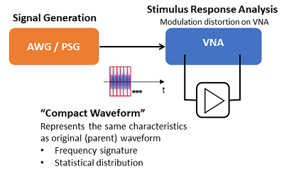 It is critical to understand that nonlinear characteristics of the DUT under modulated signal condition is highly dependent on the stimulus signal. It is also important to create the compact test signal that can stimulate the DUT with the most representative statistical characteristics to the practical usage of the DUT.