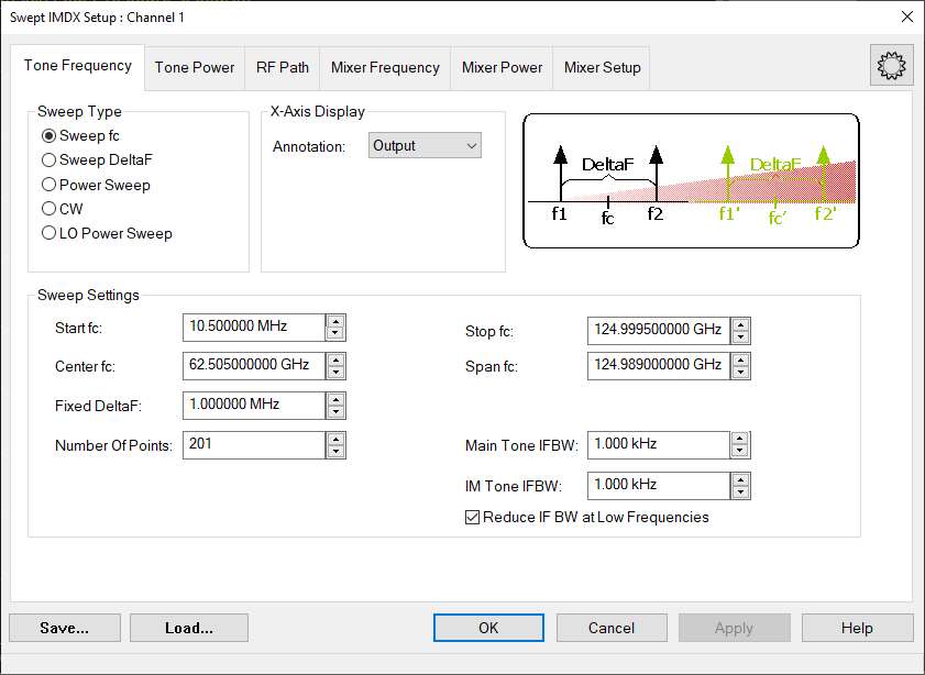 The following tabs are shared with the Swept IMD Setup dialog. Use the following links to go there for help: