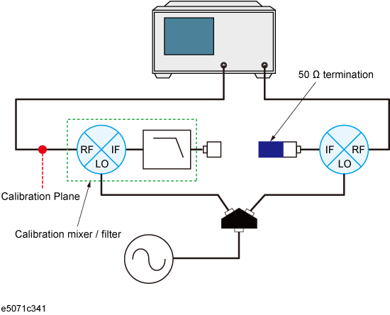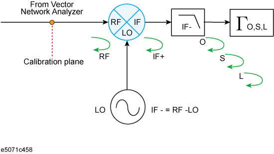 Note: The calibration mixer must be reciprocal. The term "reciprocal" means the magnitude and phase of the conversion loss are equal both in the forward and reverse directions. The forward conversion loss occurs during the measurement of the output signal at the IF port while inputting measurement signals into the RF port. In contrast, the reverse conversion loss occurs during measurement of the output signal at the RF port while inputting measurement signals into the IF port.