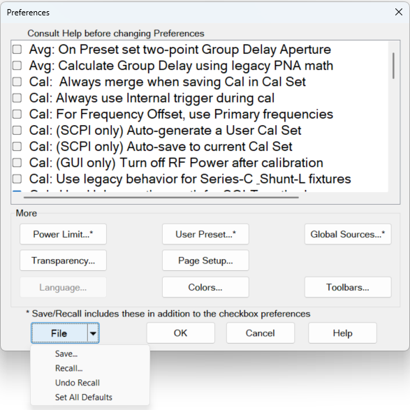 Cal: (SCPI only) Auto-generate a User Cal Set - Completed calibrations are automatically saved to an auto-named User Cal Set. Caution: this can cause a lot of saved User Cal Sets. Learn more.