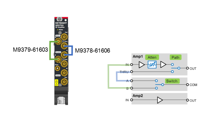 The two semi-rigid cables are furnished with the M9379A. The example of connections are shown below.