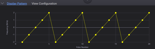 The wobbulation rate is not forced to be an integer multiple of the Average PRF. Instead, it has infinite resolution based on the total time of the signal. It is possible to have a discontinuity at the end of the wobbulation pattern unless you force the wobbulation rate to be an integer multiple of the signal's average PRF.
