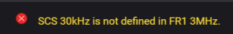An error message is displayed (as shown in the sample screen below) if the Bandwidth option is not in the selected Operating band.