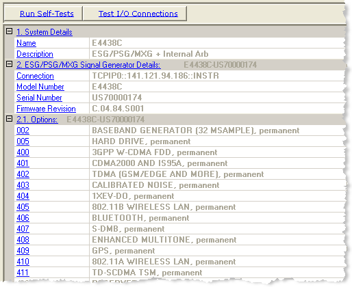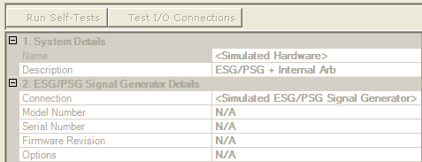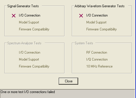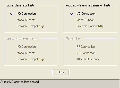 Click this button to run an I/O interface connection test between the signal generator and the PC. performs the same tests as the button.