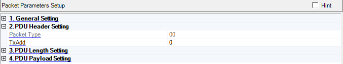 Double-click or use the drop-down menu to set header byte state of the Bluetooth low energy wireless technology packet.