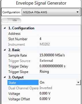 Double-click or use the drop-down menu to turn on or turn off the output of the Envelope Signal Generator.