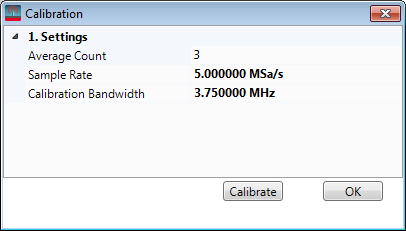 Calibration Bandwidth – Specifies the calibration bandwidth. This value should be less than the sample rate. Default: 800 MHz. Range: 5 MHz to 10 GHz.